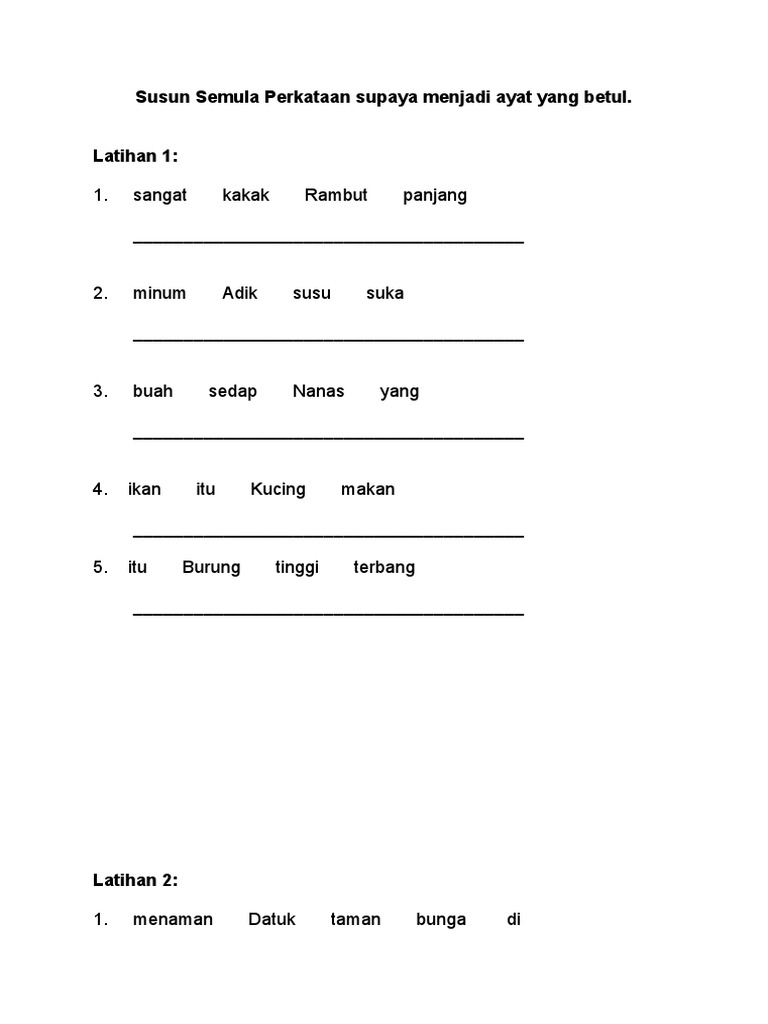 Susun Semula Perkataan Supaya Menjadi Ayat Yang Betul Pdf